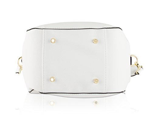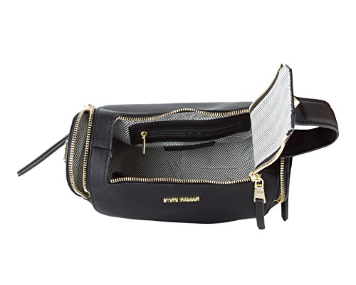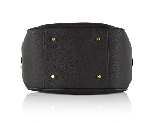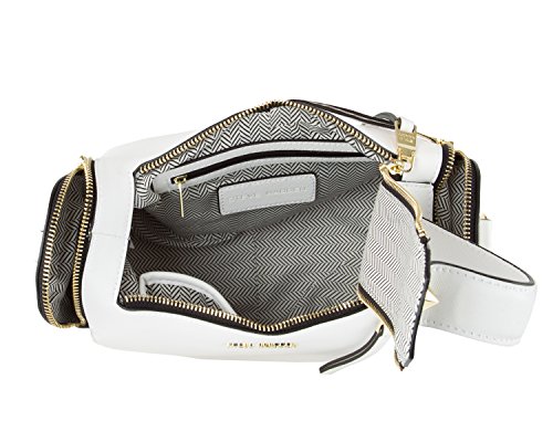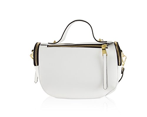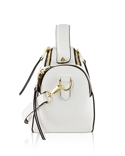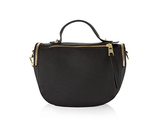 -. Feature : Top Double Zipper closure, Gold Signature hardware, Top handle 2.5 / Moon shaped, PVC Saffiano Textured exterior, Side Zipper pockets / Removable adjustable crossbody strap 22 shoulder drop / Moon shaped, Fully lined interior with zip pocket and 2 slip pockets / Messenger Bag: 9" x 6" x 5" (WxHxD)