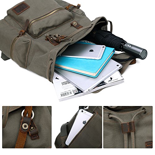 -. Brand : GINGOOD -. Feature : ☆SIZE: 19L: Approx. 13.8"L x 15.7"H x 6.7" W. / ☆MATERIAL: The canvas backpack is made of 100% durable canvas, leather decorative straps and zipper buckles, and metal zippers. / ☆STRUCTURE: 3 exterior zipper pockets; 5 interior pockets; 1 rear zipper pocket; 1 tablet/up to 14" laptop padded compartment. / ☆MULTI-PURPOSE: The vintage canvas backpack can be used as a hiking backpack, school rucksack, causal travel daypack, high school or college bag, shopping daypack, work or office rucksack etc. / ☆AUDIENCE: Several colors can be chose, which is suitable for men, women, boys, girls and adults etc. -. Label : GINGOOD -. Manufacturer : GINGOOD -. ProductGroup : Sports -. ProductTypeName : OUTDOOR_RECREATION_PRODUCT -. Publisher : GINGOOD -. Studio : GINGOOD -. Title : Canvas Backpacks Vintage Rucksack Casual Leather Army Kipling Knapsack 19L