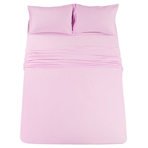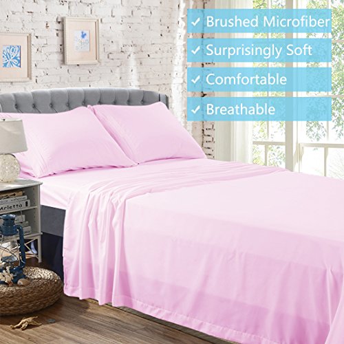 Merous Microfiber Bed Sheets Set - 100% Brushed 1800 Soft Hypoallergenic Fitted Sheet 4 Piece Set - Wrinkle, Fade, Stain Resistant - Pink, Queen