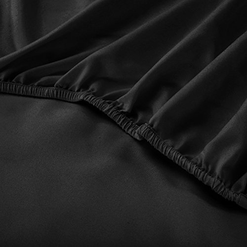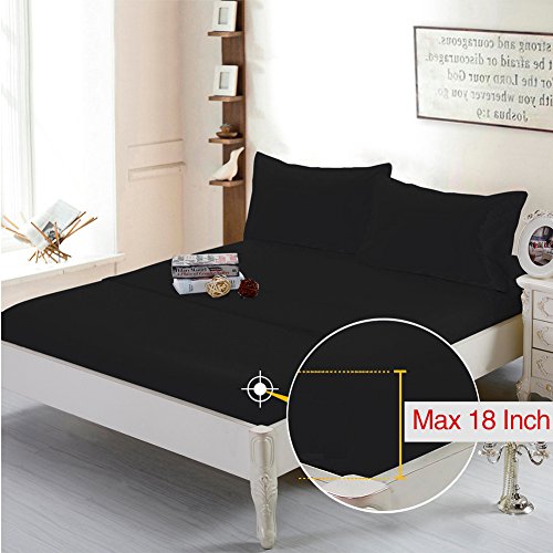 Fitted Bottom Sheet (King, Black) Deep Pocket Brushed Microfiber Bed Sheet, Wrinkle, Fade, Stain and Abrasion Resistant