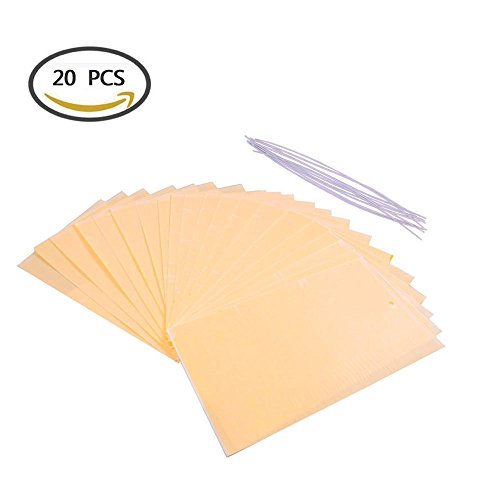 Trapro 20-Pack Dual-Sided Yellow Sticky Traps for Flying Plant Insect Like Fungus Gnats, Aphids, Whiteflies, Leafminers - (6x8 Inches, Twist Ties Included)
