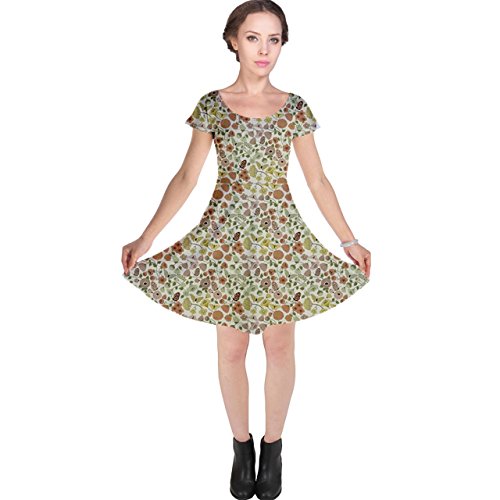 Title : Colorful Floral Pattern With Butterflies On Beige Cap Sleeve Dress