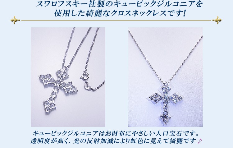 スワロフスキー社製のキュービックジルコニアを使用した綺麗なクロスネックレスです。