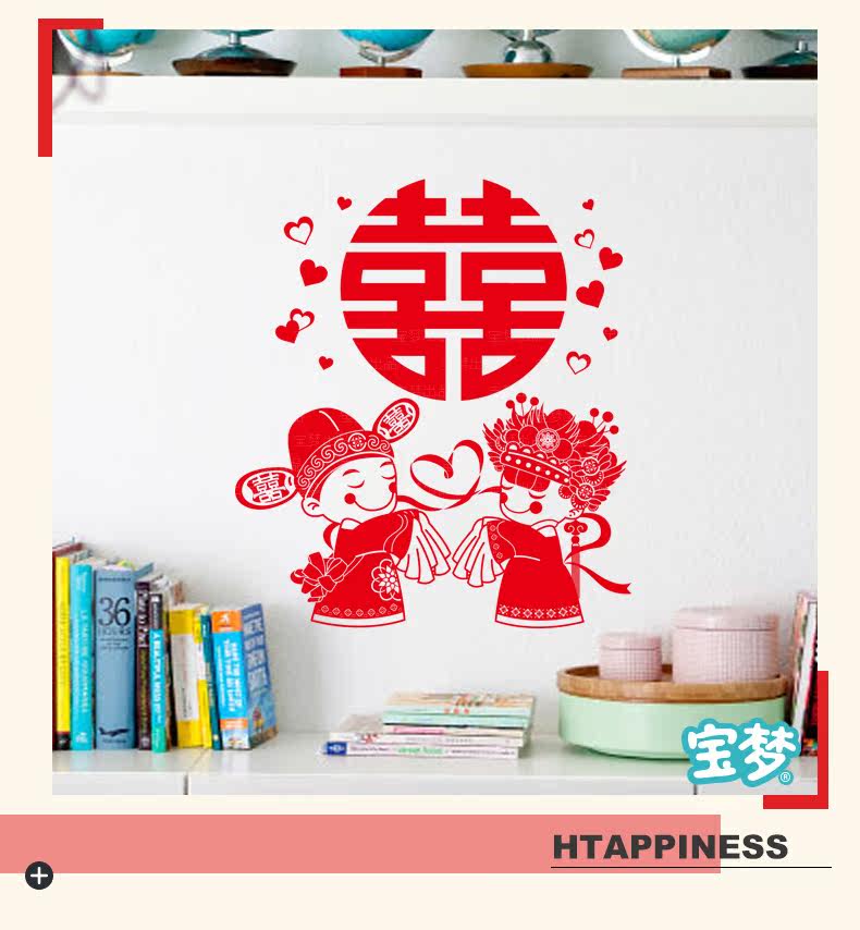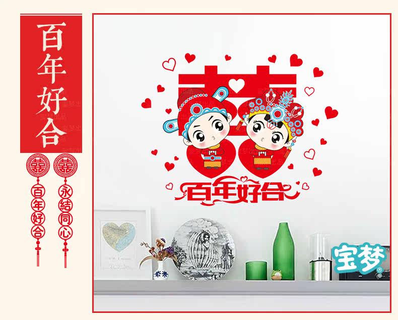 浪漫喜庆婚房装饰品墙贴纸创意温馨卧室床头结婚布置用品自粘贴画 浪漫喜庆婚房装饰品墙贴纸创意温馨卧室床头结婚布置用品自粘贴画