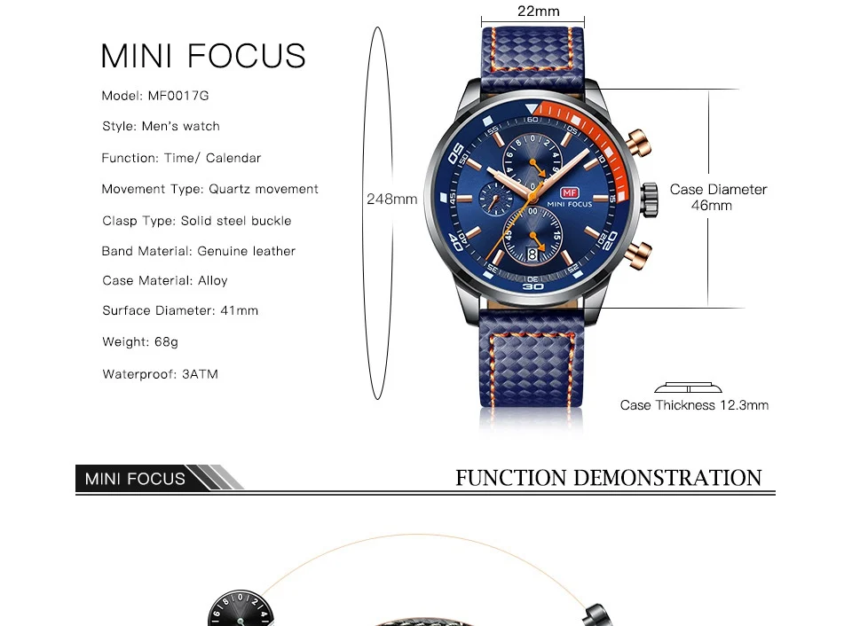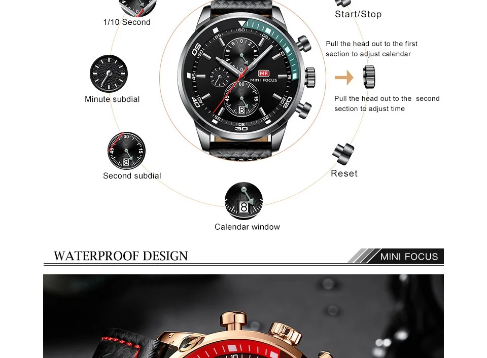 Feature:Auto Date,Water Resistant,Chronograph