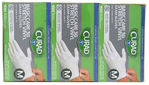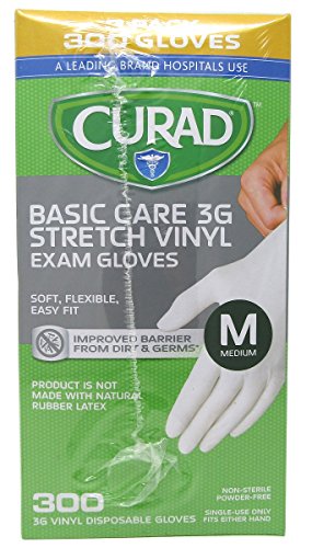 Curad 3G Vinyl Synthetic Powder-Free Exam Glove, Medium, 300 ct
