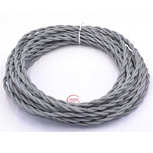 32.8ft Grey Twisted 18/2 Rayon Covered Wire,HESSION Antique Industrial Electrical Cloth Cord,Vintage Style Lamp Cord strands UL listed