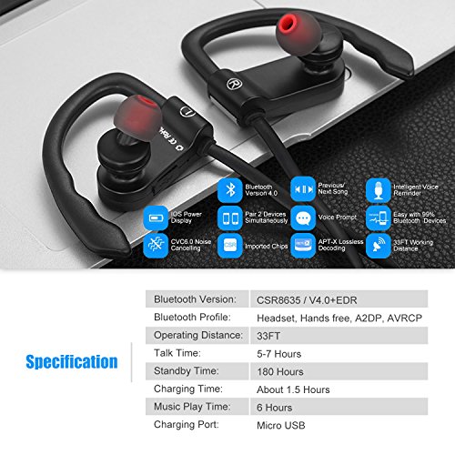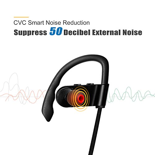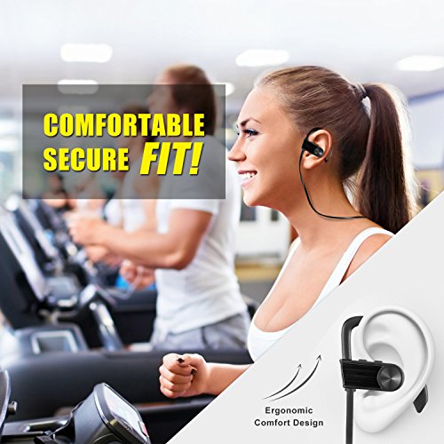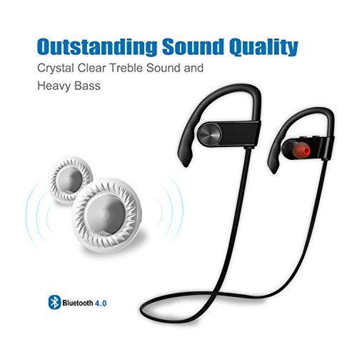 -. Title : Blutooth Headset, Headphone Wireless Sport Over-Ear Secure Comfort Fit, Strong Heavy Bass Crystal Clear Sound, Water Resist IPX4 Earbud, iPhone, Android Compatible, Noise Cancelling Mic