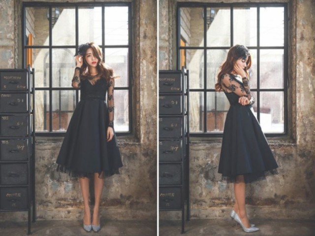 レースの透け感がセクシーなひざ丈ワンピース☆