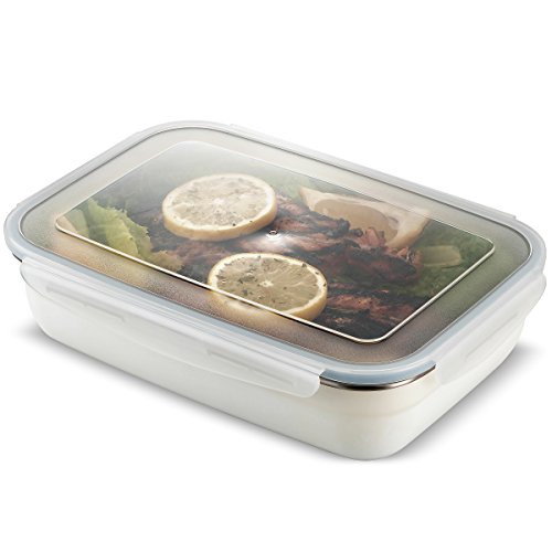 Komax Stenkips Stainless Steel Food Storage Lunch Container Large 57.5oz. - Airtight, Leakproof With Locking Lids - BPA Free Plastic - Freezer and Dishwasher Safe