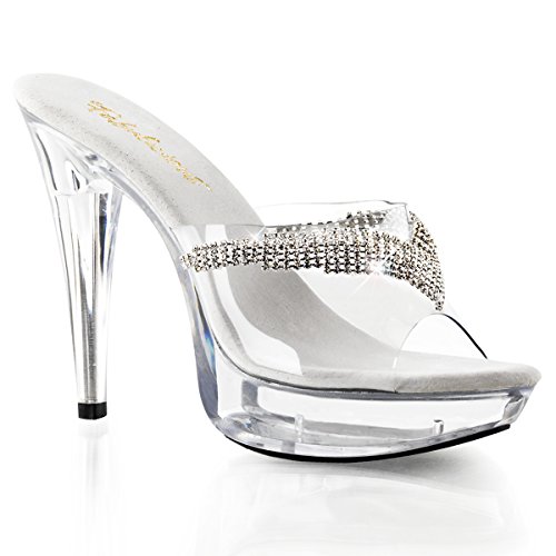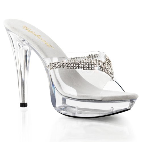 Product DescriptionHeel Height: Approx. 5' Tall. These elegant open toe sandals feature a rhinestone ornament on the top with a 1" platform.0
