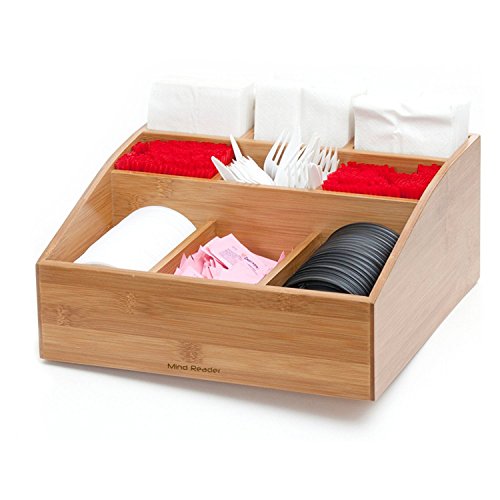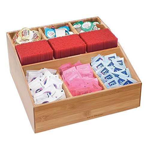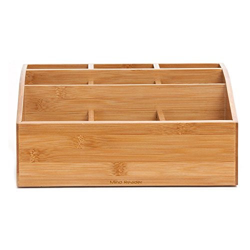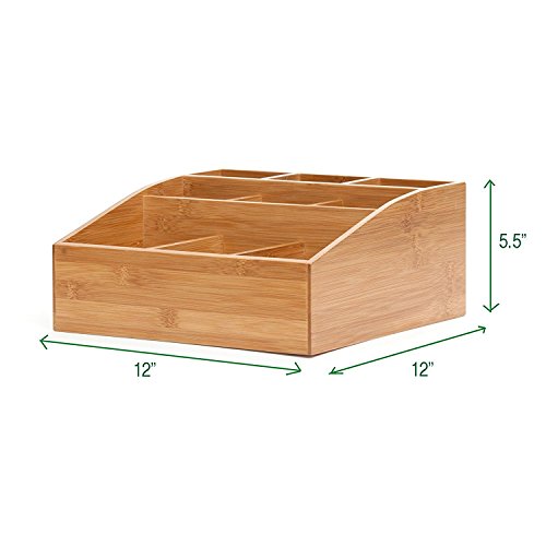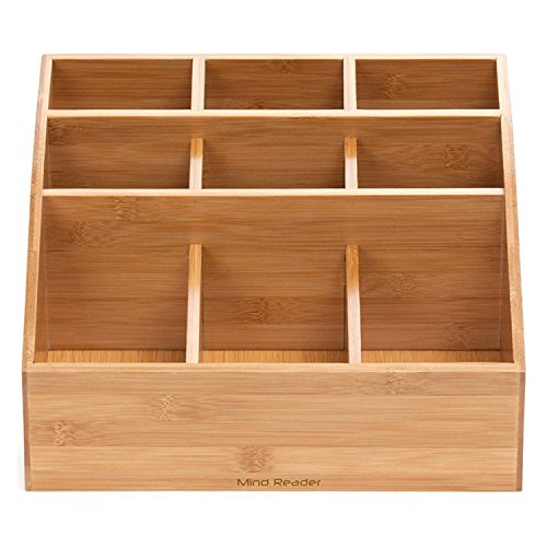 Mind Reader "Square" 9 Compartment Condiment Organizer in Bamboo Wood, Brown