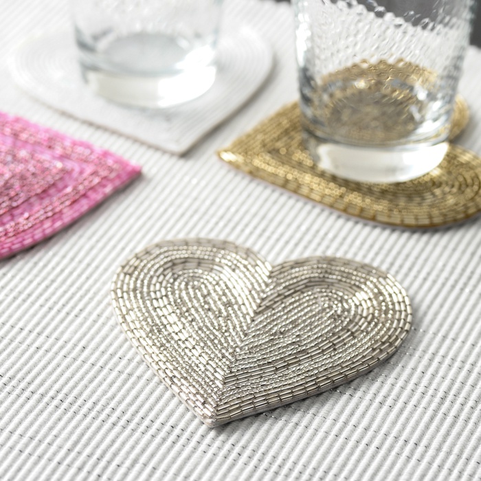하트 모티브가 작고 예쁘장스러운 섬세한 수작업 비즈 코스터.