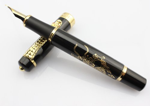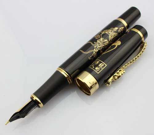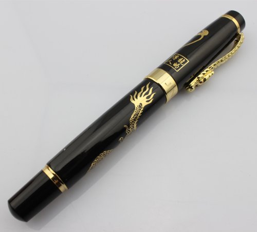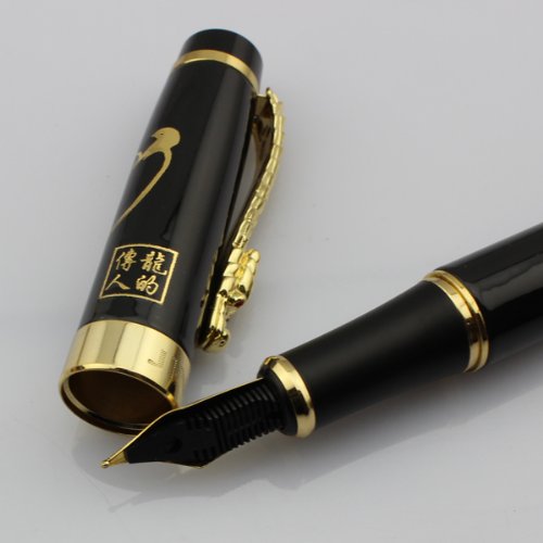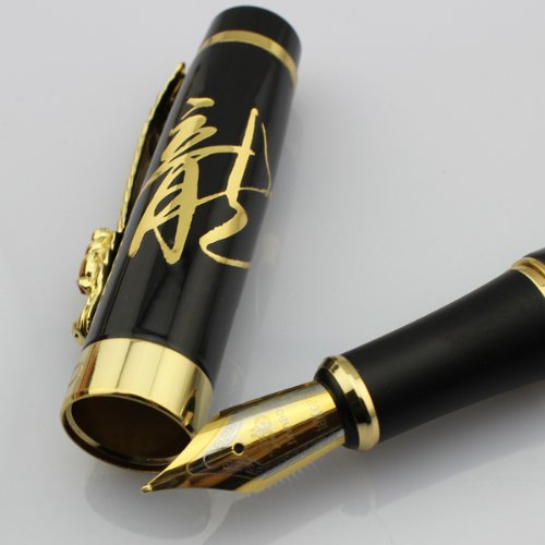 Jinhao Fountain Pen Descendants of the Dragon / Loong Black with Golden Dragon pattern & Chinese Characters
