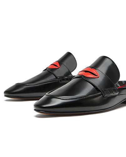 Product Description Flat black slingback mules. Raised vamp. Design detail on the front.Sole height 1.2 cm. / 0.4 inches Official brand size equivalence for Women Shoes. Size 35 | USA 5 ? ?|?UK 2 Size 36 | USA 6 ? ?|?UK 3? Size 37 | USA 6.5 |?UK 4? Size 38 | USA 7.5 |?UK 5? Size 39 | USA 8 ? ?|?UK 6 Size 40 | USA 9 ? ?|?UK 7? Size 41 | USA 10 ?|?UK 8? Size 42 | USA 11 ?|?UK 9? Size 43 | USA 12 ?|?UK 10 0