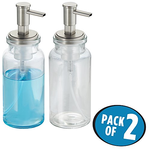 mDesign Glass Foaming Soap Dispenser Pumps, for Kitchen or Bathroom Countertops - Pack of 2, Clear/Satin