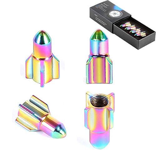 DSYCAR Multicolor Rocket Style Bike Motorcycle Car Wheel Tires Valve Stem Caps Dust Cover for Car styling Decoration Accessories - 4Pcs/Box