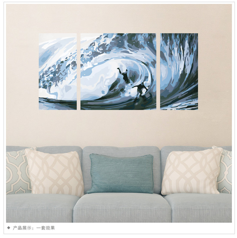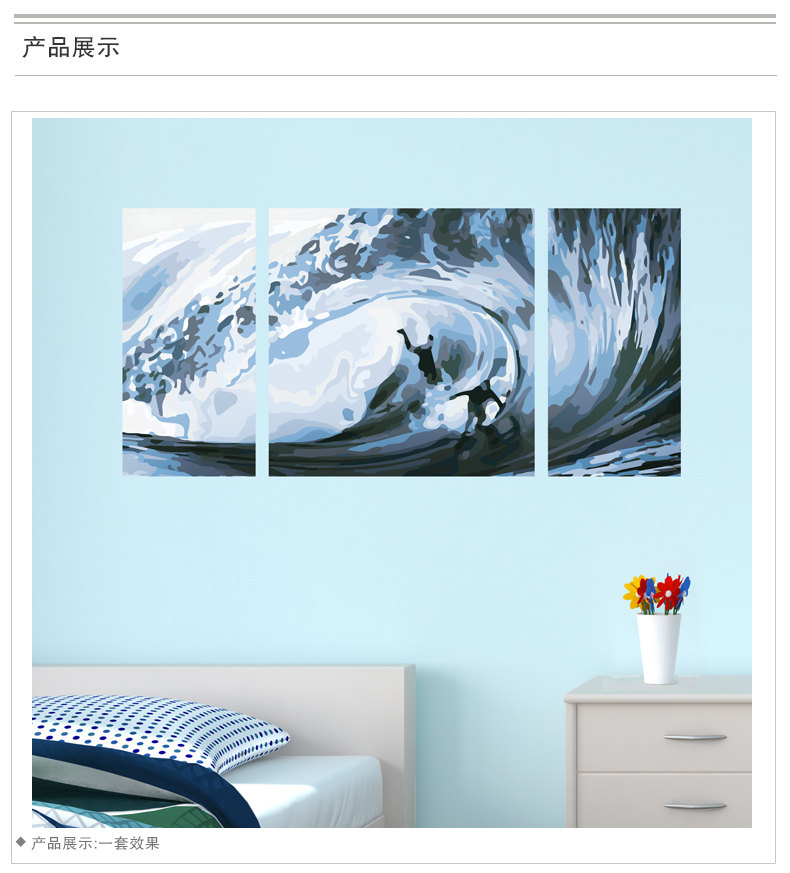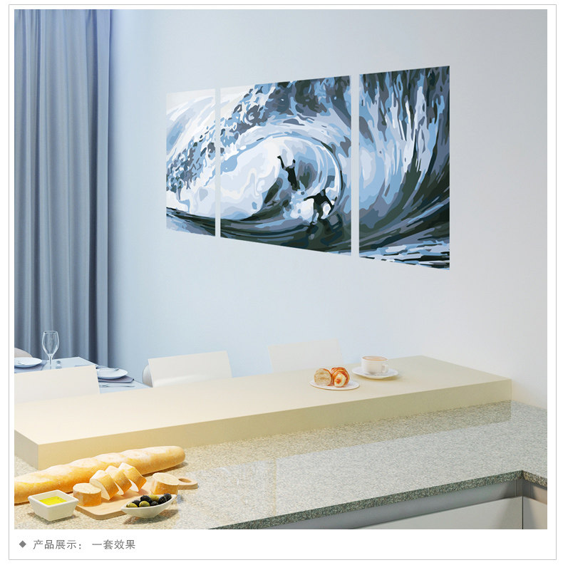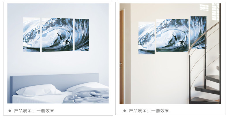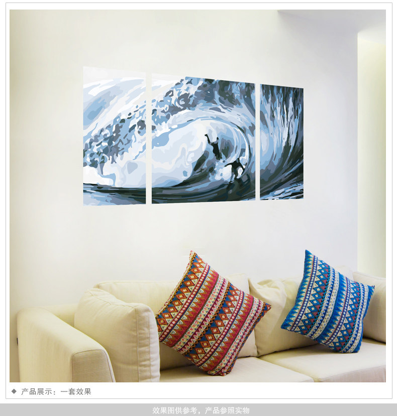 3d立体墙贴纸贴画客厅沙发背景墙壁纸装饰冲浪艺术创意地中海风格