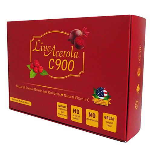 LiveAcerola C900 is a healthy and delicious beverage which combines Acerola berries with Bioflavonoid and Red Beets.
