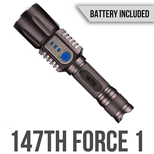 147th Force 1 - Tactical Flashlight with Power Bank - Made with Reinforced Aluminum - 1000 Lumens LED Bright White 2200mAH Portable USB Rechargable - For Emergency and Camping (Battery Included)