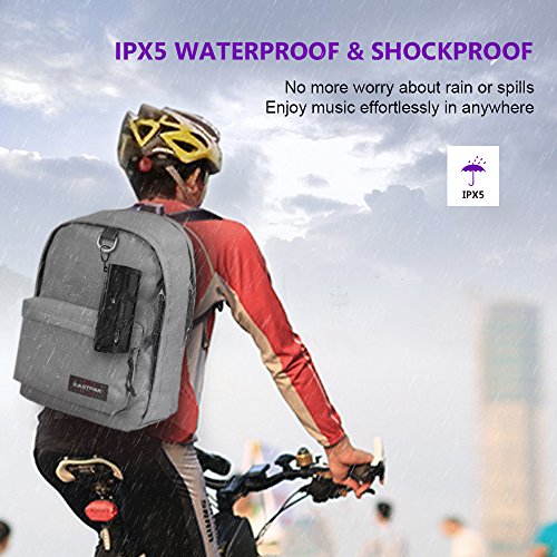 -. Feature : 【High Quality Stereo Sound】 Built-in dual high-performance drivers for excellent crystal clear sound and enhanced bass that distance it from the competitors / 【Long Lasting & Hands-Free】 High capacity rechargeable battery enables 30 hours of non-stop music time for beach, pool, cycling, camping, boating and more. Built-in microphone to support hands-free call / 【IPX5 Waterproof & Dustproof】 Silicone case and seamless interface design ensure the speaker can resist gentle water spray & splash but can not be partially or fully submerged / 【Wireless & Wired Connection】 Bluetooth V4.2 Technology provide the most stable and seamless connection with most of Bluetooth devices up to 33 feet away or connected to devices with 3.5mm audio cable (included) / 【Ultra Durable & Stylish Design】 Featuring a smooth rubber exterior to protect the speaker from scratching and impact. Impressive power and volume buttons design to personalize music simply