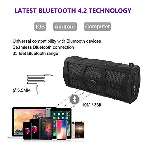 -. Title : MindKoo Bluetooth Speaker, Outdoor Portable IPX5 Waterproof Wireless Speaker with Built in Mic, Hi-Fi Stereo Sound for Travel, Camping, Picnic and More