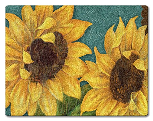 Sunshiny Day Bold Yellow Sunflowers Glass 10 Inch Kitchen or Bar Cutting Board
