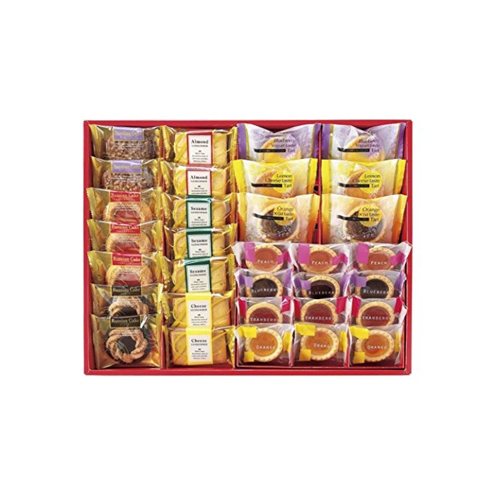 원재료:샌드 쿠키(아몬드 치즈)요구르트 향의 블루베리 타르트 치즈 향의 레몬 타르트 코코아 향의 오렌지 타르트 러시아 케익(너트 밀크 초콜렛 리치《비타》)×각2개,샌드 쿠키(세서미)쁘띠 가토(스트로베리 블루베리 오렌지 피치)러시아 케익(마카론 스트로베리)×각3개