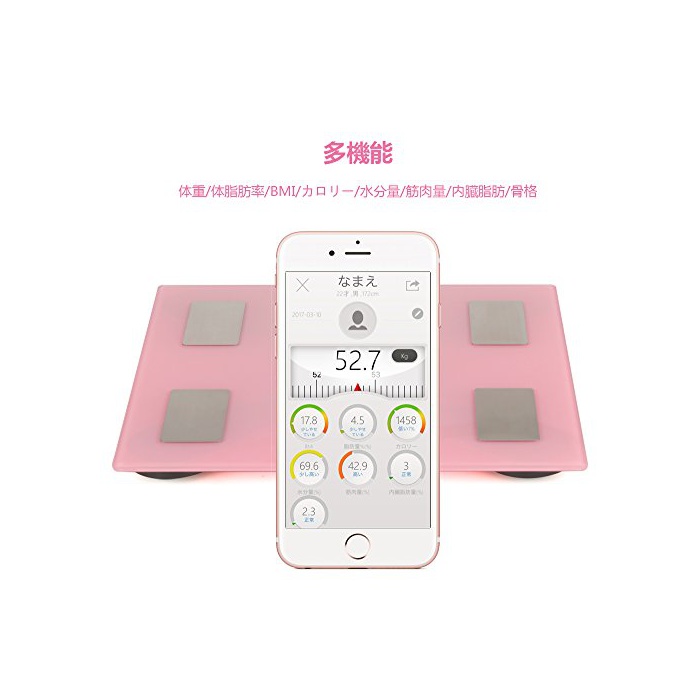 다기능의 체중계:체중/체지방율/BMI/칼로리/수분량/근육량/내장 지방/골격 등 수치 측량 할 수 있는 기능 충실 헬스 미터 전회치 메모리,건강관리나 트레이닝에 전면 적 서포트 헬스 미터.데이터 통신과 고속 측정에 스마트로 체중 관리.