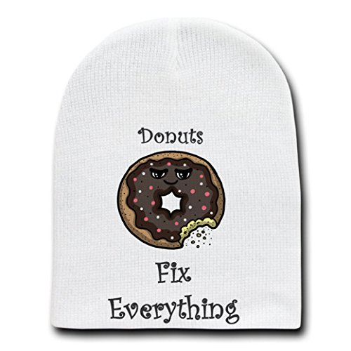 (Hat Shark)/Accessories/Hats/DIRECT FROM USA/"Donuts Fix Everything" Food Humor Cartoon - White Beanie Skull Cap Hat