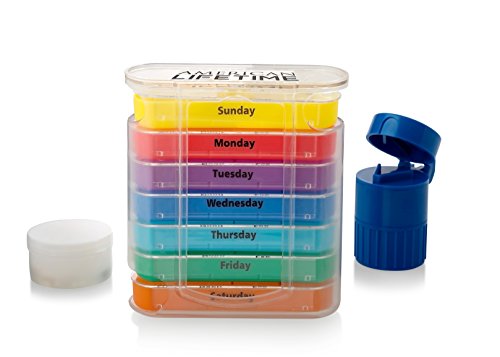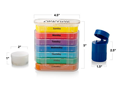 Pill Organizer Box With Splitter, Crusher, And Extra Case - Large...