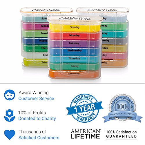 ✔ NO MORE CONFUSION - Excellent living aid for the elderly, seniors and all ages. Organize pills into AM / PM (day/night), 2, 3 or 4 times a day, with our single day compartments. Our memorable colors help distinguish days of the week. Chose between Spring Colors, Autumn Colors, or the Special Edition Summer Colors.
