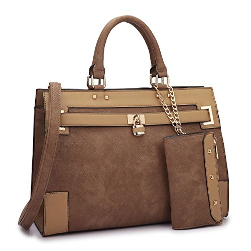 The MMK Collection Fashion handbag made of 100% High quality Faux Leather~The tote gets a luxurious upgrade with this glamorous cut out handle design and faux leather! Perfect for a day of shopping or everyday in your busy life, this flat bottom tote has space and style. Keep your items organized in two separate interior compartments, divided by a deep center divider zip top closure pocket. Removable shoulder strap, interior and exterior back wall zip closure pockets and open top cell phone and item pouch pockets all come together to make this tote for those fashion conscious and on the move! Both of purse come with coin purse ~compartments for cell phones, wallets and keys with enough space left for virtually any tablet you have or even a small Tablet. Looking For the purse are spacious, stylish and economically priced. Easy to carry with either the top handle, this bag will never leave your side. Fashionable, affordable and convenient, you'll want one in every color! Dear Buyer : Thanks for your business! Your positive feedback will be greatly appreciated! If you have any questions, please don't hesitate to contact us directly. We will always strive to put our 100% to resolve your issue and delight our customers ~Please Note: 1. All sizes are manually measured. The margin of error is 1 inch. 2. Little smell is normal. Open it and put it in a ventilated environment for few days, the smell will disappear. 3. Due to different camera, light environment and display, the physical color will be a little different from pictures.Feature