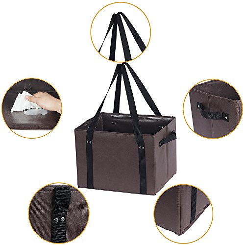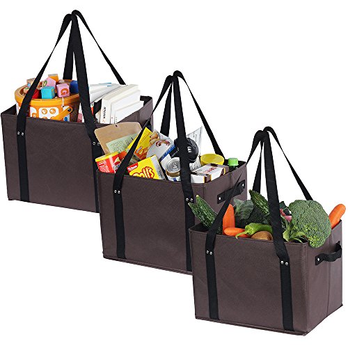 Stand up by itself- Each bag is collapsible with a "foldable hard structure bottom", which keeps the grocery tote bags flat and sturdy in your trunk so nothing will slide around in your car and kitchen. Stays open and upright for easy loading.