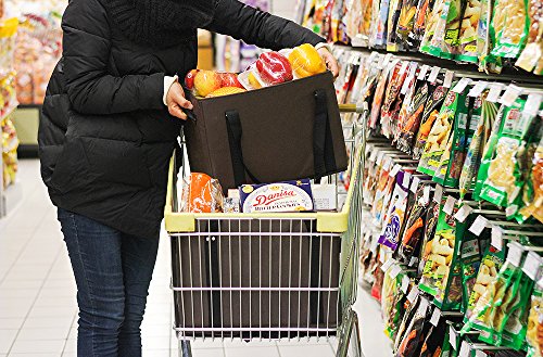 Large Capacity-Grocery shopping bags are 14.5”L x 10”W x 10”H. Perfect for family size trips to the grocery store, and great for bulky items since our bags fit up to 30lb when shopping for groceries.