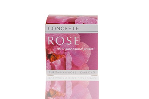 -. Feature : The rose concrete is a natural product obtained through cold extraction of fresh rose blossoms of the Bulgarian oil-bearing rose - Damask Rose . It is Vaseline - like semi solid waxy product, with orange - yellow color and unique fresh aroma of rose flowers. In the Rose concrete's compound structure are found more than 166 components with profound biologically active effect. It has strong antimicrobial, epithelial and anti-allergic properties. Revitalizes and soothes the skin.