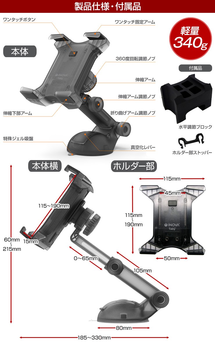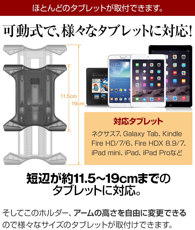 | 対応機器 | 幅約115~190mm、厚さ14mm以内のタブレット |