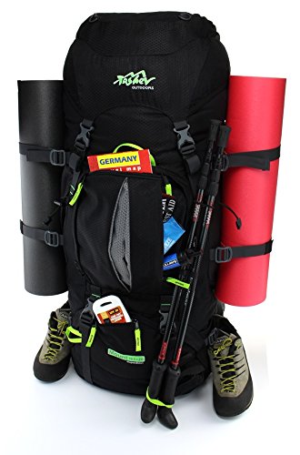Dieser Wanderrucksack besteht aus dem hochwertigen, extrem robusten Cordura®-Stoff. Eine integrierte, abnehmbare Regenhülle ist ebenso vorhanden. Die zusätzlichen Öffnungen ermöglichen einen leichten Zugang zu den Innenräumen des Rucksacks. Der Rucksack ist somit auch von vorne über einen langen Reißverschluss zugänglich. Drei faltbare Taschen bieten zusätzlich Möglichkeit, weitere Gegenstände zu verstauen. Der Rucksack weist eine Reihe praktischer Befestigungsmöglichkeiten auf: Neben den obligatorischen Halterungen für Eispickel oder Stockhalterungen gibt es eine Reihe von Befestigungsschlaufen, die eine Vielzahl von Einsatzmöglichkeiten bieten. Mit Hilfe der Kompressionsriemen lässt sich der Rucksack kompakt an den Rücken bringen.