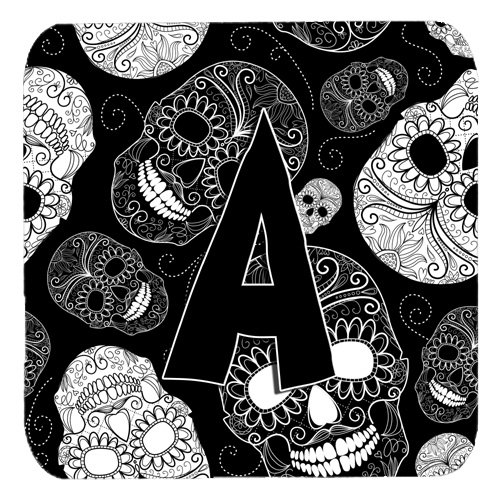 Caroline's Treasures CJ2008-AFC Letter A Day of the Dead Skulls Black Foam Coasters (Set of 4), 3.5", Multicolor