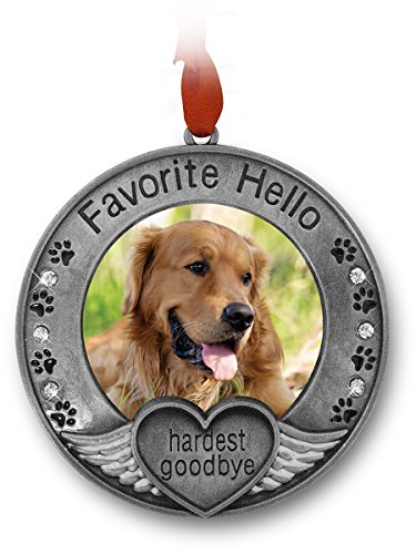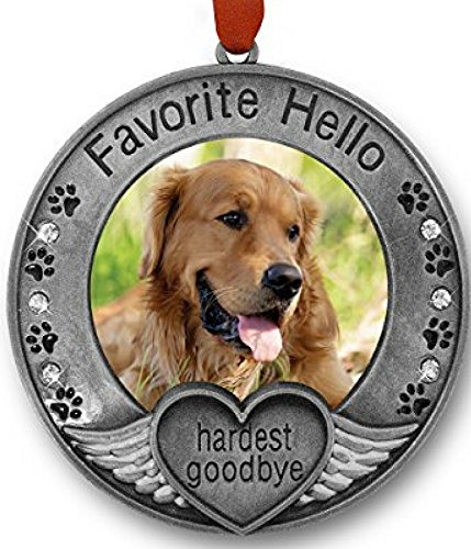 Pet Memorial Ornament - Picture Ornament for a Pet - Engraved with the Saying Favorite Hello, Hardest Goodbye - Pet Remembrance