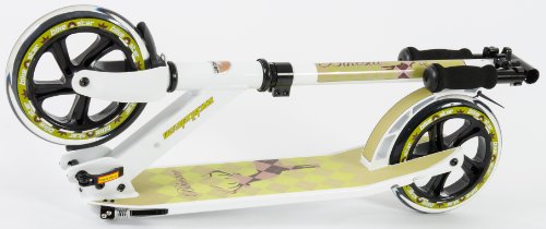 - Feature : Lightweight premium Scooter made of high quality Aluminium / Huge carrying capacity up to 100 KG (220 lbs) / Lower foot board prevents leg fatigue / Fender/spray protection on both wheels / Giant 205 mm (8 inch) wheels ensure a smoother ride