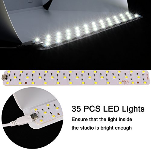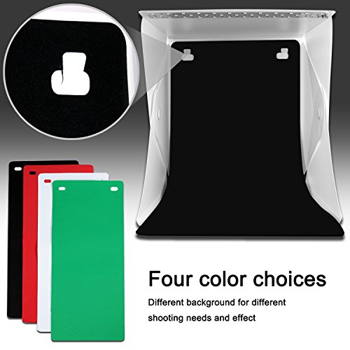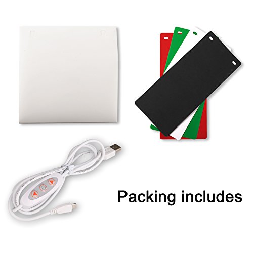 - Feature - * 100% Brand new and high quality * Ajustable LED Light powered via a USB Cable* Super bright led beads, provide 1 to 10 files for being suitable for different demand of brightness * Provided 4 colors backdrops, well meet your needs * Portable design, easy to store and carry, ideal for you to shoot high quality picture for small products * Upgrade button design, metallic button will more solid, more durable * Folded Size: 9.8x9.5x9.0 inch - Package Includes - * 1x Photo Studio Box * 1x USB Cable (cable with controller) * 4x Background Cloth ( Black, White, Green, Red ) 0 |