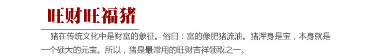 猪的外表胖胖圆圆的,是传统所认为的财富、福气的象征,因此在风水学上,猪是具有财富的灵动力。 可以镇宅化煞,招财聚气。