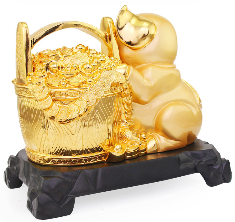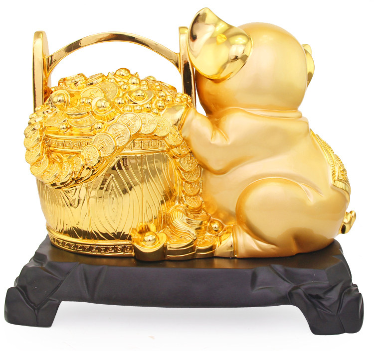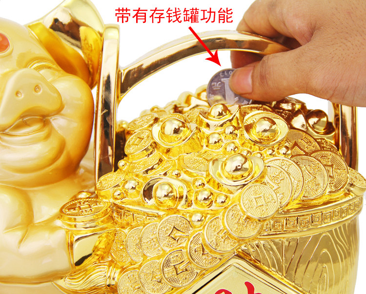 十二生肖金猪聚宝盆存钱罐摆件 福猪抱元宝风水招财创意家居饰品