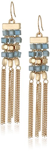 -. Feature : Items that are handmade may vary in size, shape and color / Made in China / Chain woven blue faceted cube-shaped beads, gold tone beads and chain fringe / Fish hook closure / Imported