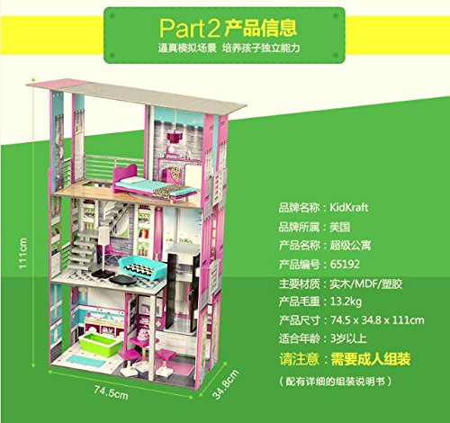 With its modern design and colorful artwork, the Glamorous Dollhouse might just be our most stylish wooden dollhouse yet. It was built to last for many years and has colorful artwork on every wall of every room. Young kids just love sitting down in front of this house and playing pretend. Features include.Feature