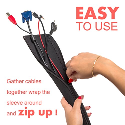 ✅EASY TO USE & MANAGE - Simply Gather cables together, Warp the sleeve around and Attached Velcro or ZIP-UP the zipper. Add or remove cables as requires.