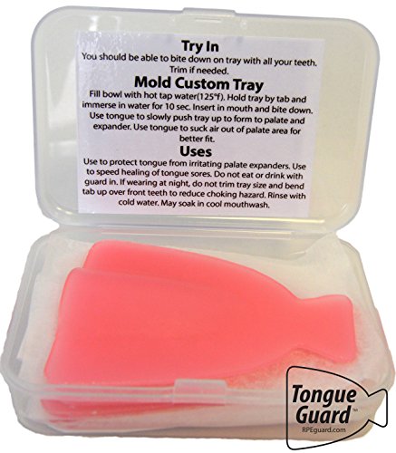 Studio : KO Products LLC Publisher : KO Products LLC Binding : Misc. Product Description Tongue GuardTM is a custom fit tray that protects your tongue from dental appliances. Dental expanders and other dental appliances can cause great discomfort and sores on your tongue. Tongue GuardTM creates a smooth hypo-allergenic barrier between the dental appliance and your tongue. It works best when using as soon as your dental appliance is placed. This will keep your tongue from ever becoming sore, cut and infected. If your tongue already has sores, this will offer instant relief and will speed healing. You can wear it as often as needed until your tongue gets used to the dental appliance. ? Prevents tongue sores and infection ? Custom molds to fit your mouth ? Promotes healing for tongue sores and infections ? Keeps tongue off dental appliance for immediate relief ? 3 trays to make new guards as you mouth changes shape Plan ahead and order now for a more pleasant ortho experience. Express shipping is available. Patent Pending. See YouTube instructional video. 0