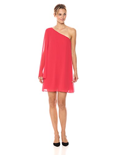 BCBGeneration Women's One Shoulder Chiffon Dress, Rose Smoke, XXS