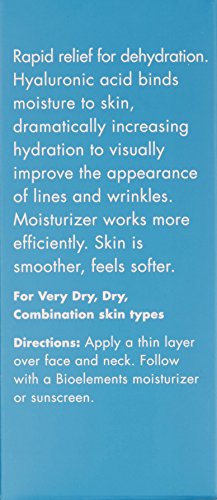 A super-hydrating serum rapid relief for dehydration. Hyaluronic acid binds moisture to skin, dramatically increasing hydration to visually improve the appearance of lines and wrinkles. Moisturizer works more efficiently. Skin is smoother, feels softer.Feature